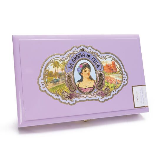 La Aroma de Cuba Noblesse cigars are blended by world-renowned cigarmakers Pepin and Jaime Garcia. This exclusive masterpiece comes in gorgeous packaging in four classic sizes handmade by skilled artisans at Pepin’s distinguished factory in Estelí, Nicaragua. A dark San Andrés Oscuro wrapper leaf shimmers over coveted reserves of the finest premium Nicaraguan tobaccos cultivated on Garcia family estates in Estelí, Jalapa, and Namanji. Every leaf of wrapper, binder, and filler harvested for Noblesse matures during a patient triple fermentation to achieve optimal flavor and aroma. Noblesse is meticulously rolled in entubado fashion and finished with a traditional Cuban-style triple cap. Luxurious notes of dark chocolate lava cake, espresso bean, and Turkish fig emanate throughout a voluptuous, full-bodied smoke with hints of Himalayan pink salt and black peppercorn. Savor this exclusive, 92-rated blend today.